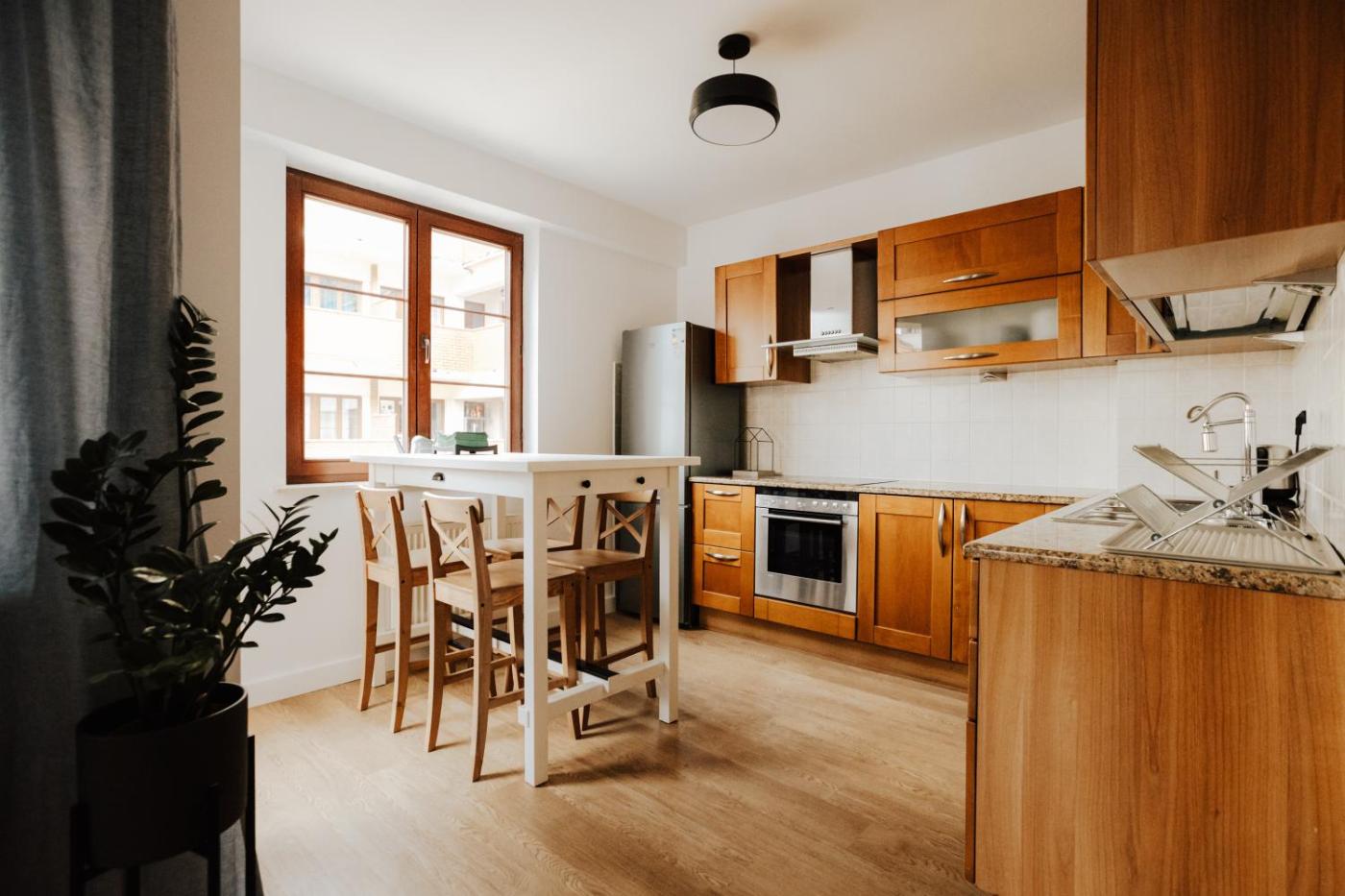 Apartament z 3 sypialniami. Featuring a private entrance, this air-conditioned apartment comprises 1 living room, 3 separate bedrooms and 2 bathrooms with a walk-in shower and a bath. The well-equipped kitchen features a stovetop, a refrigerator, a dishwasher and kitchenware. The spacious apartment provides a tea and coffee maker, a seating area, a dining area, a flat-screen TV with streaming services, as well as city views. The unit offers 7 beds. Apartament - 14 osobowy. Powierzchnia pokoju ok.: 90 mkw.